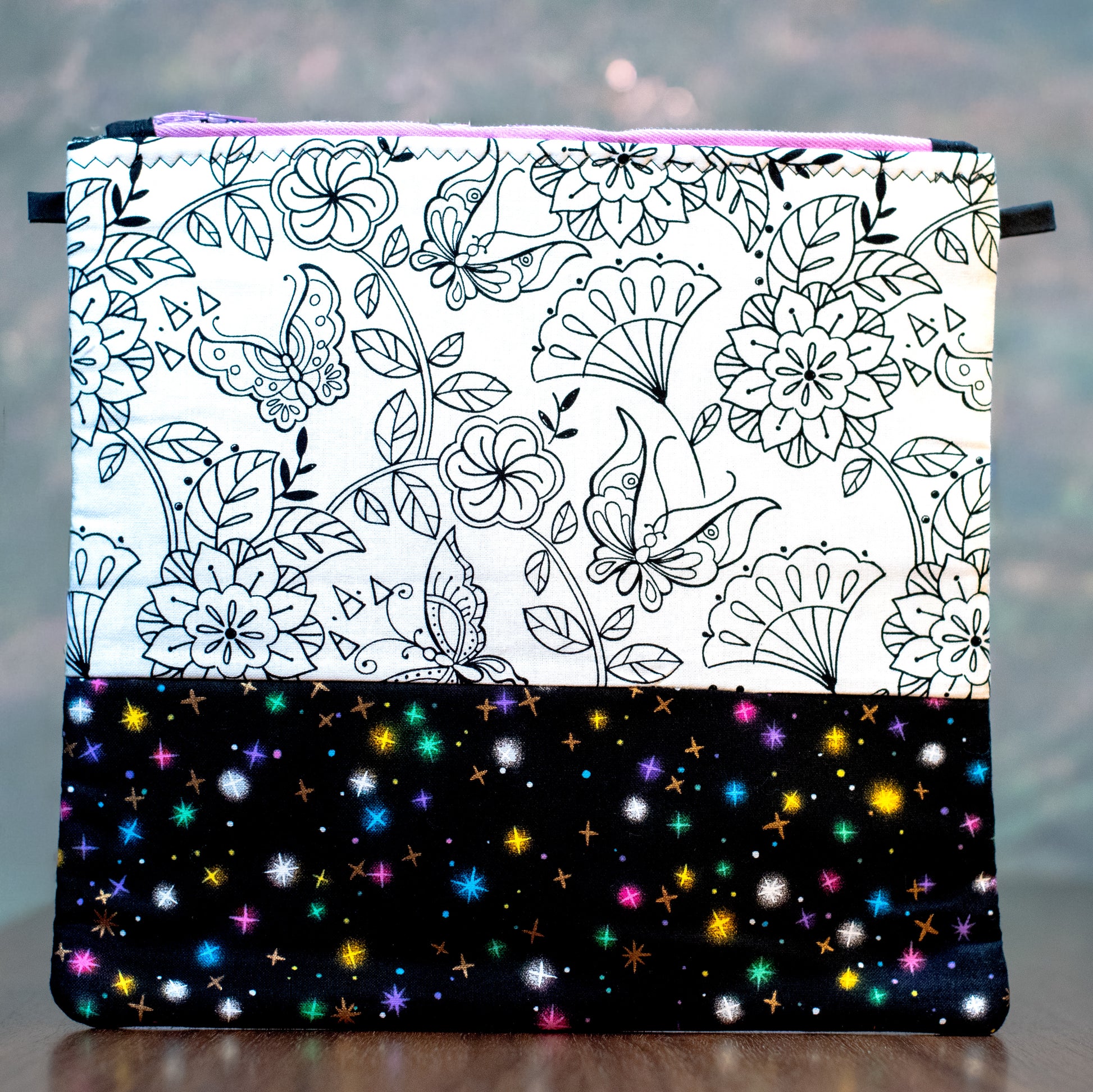Important: All Eclectica Color-Me Zipper Bags arrive in black and white, ready to be colored. Pattern placement may vary from bag to bag, making each one uniquely handmade. Colors shown in photos may differ due to screen settings. Any colored examples are for inspiration only—your finished bag will be a one-of-a-kind creation!