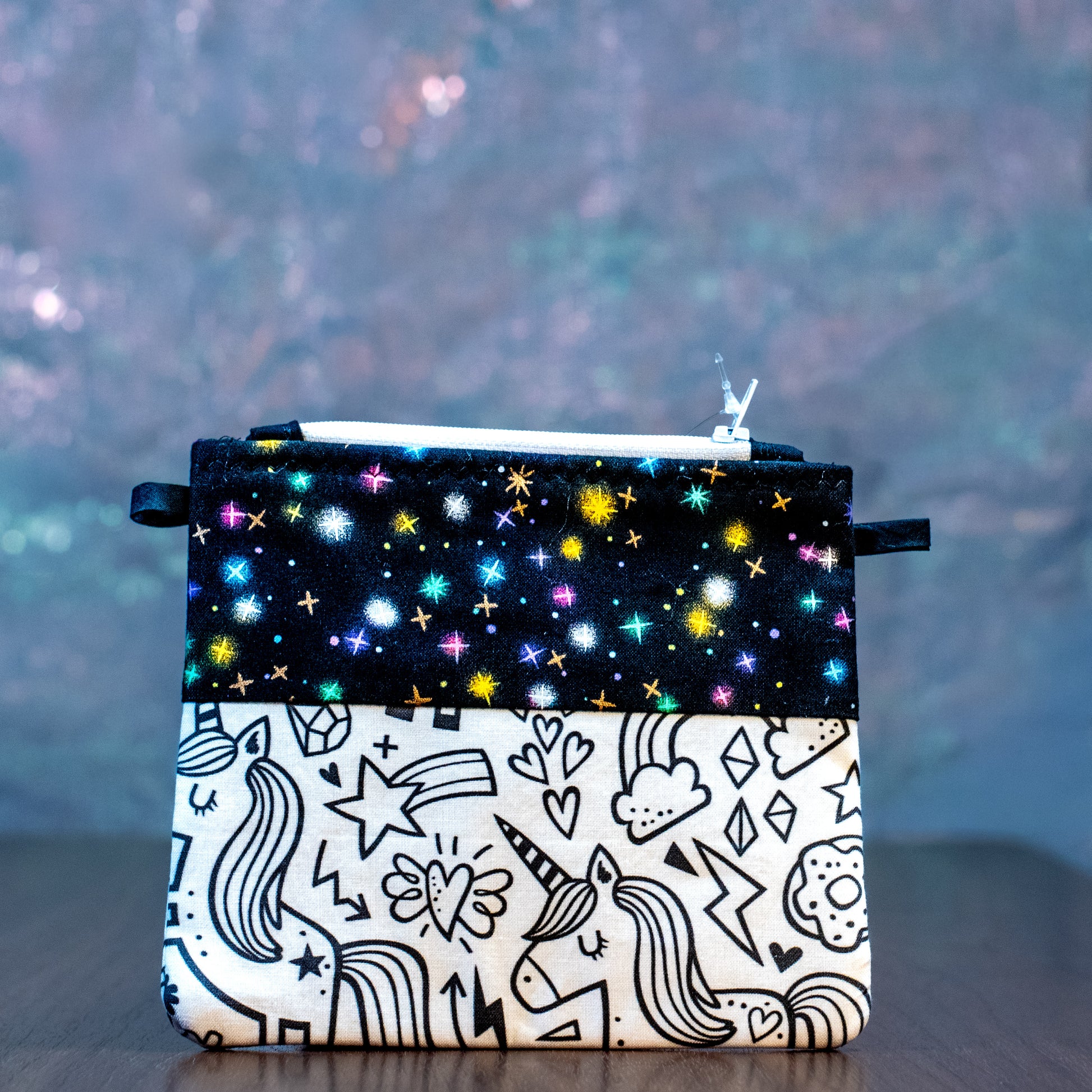 Important: All Eclectica Color-Me Zipper Bags arrive in black and white, ready to be colored. Pattern placement varies, making each pouch uniquely handmade. Colors shown in photos may differ due to screen settings. Any colored examples are for inspiration only — your finished bag will be a one-of-a-kind creation!