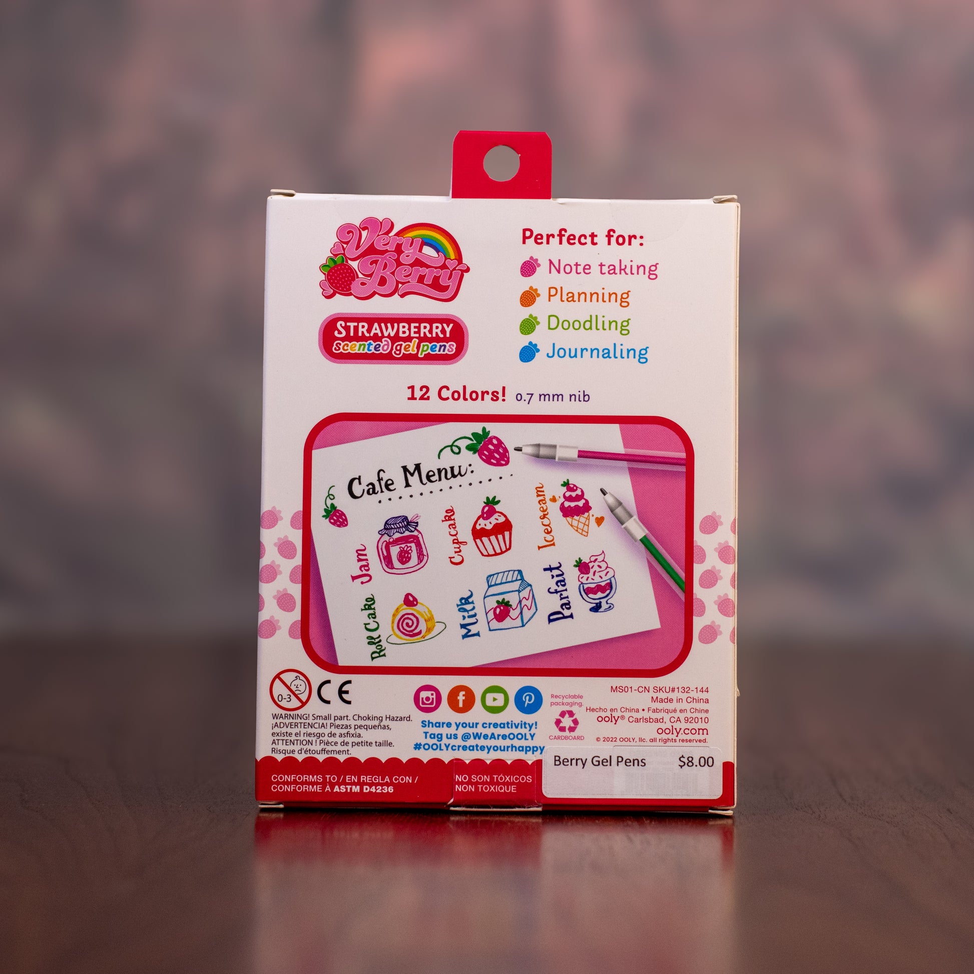 Each pen glides smoothly with vibrant, juicy color and a light strawberry scent that makes coloring even more fun.